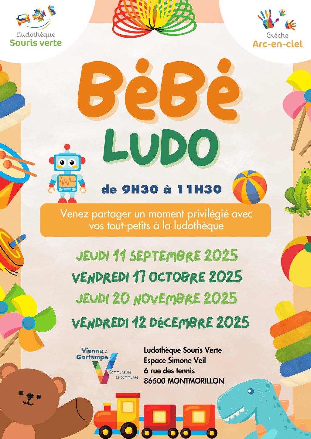 Organisé par la ludothèque souris verte et la crèche Arc-en-ciel de la Communauté de communes Vienne et Gartempe.