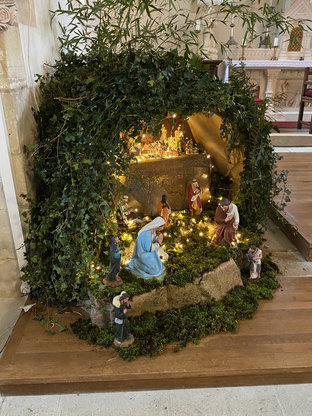 La crèche de Noël a pris place à l'église, réalisée avec soin par le conseil municipal.