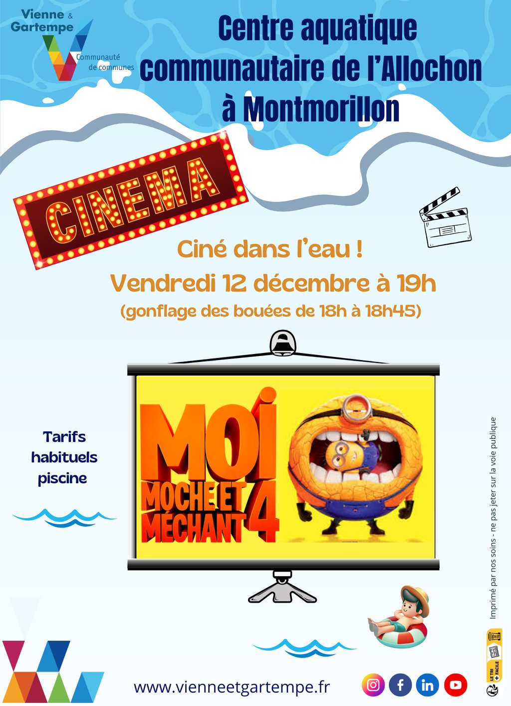 Le centre aquatique de l'Allochon à Montmorillon vous propose de regarder un film autrement! Que ce soit dans l'eau, sur la plage ou dans les gradins, vous pourrez profiter de la projection du film "Moi Moche et Méchant 4".